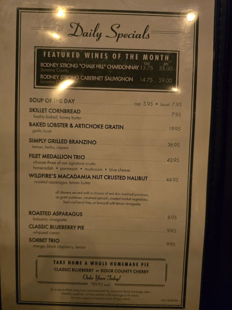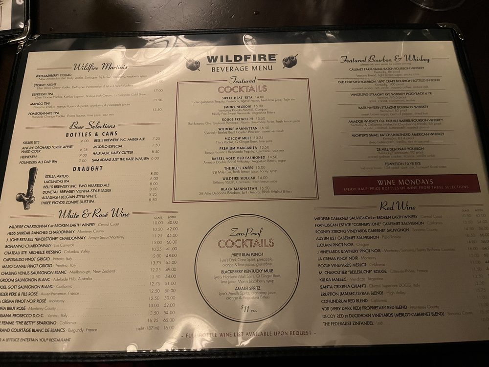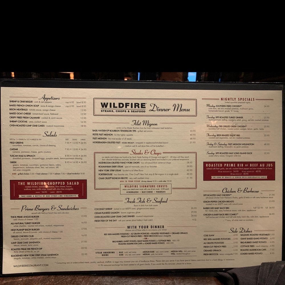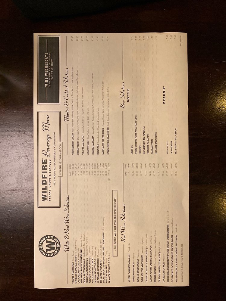 Introducing the menu at Wildfire Schaumburg, a culinary gem nestled in Schaumburg, Illinois, where seafood and steakhouse flavors converge. Located at 1250 E Higgins Rd, this eatery boasts a delightful array of mouthwatering dishes.